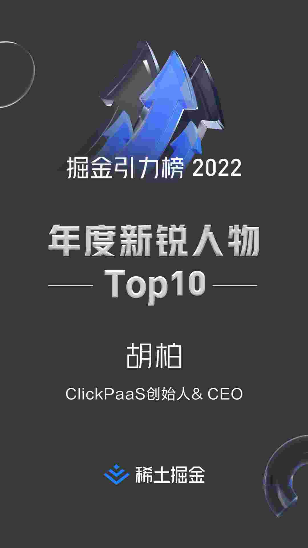 2022年1月6日,,稀土掘金社区第一届「掘金未来大会」成功举办,,会上发布了“2022 稀土掘金引力榜 年度新锐人物”榜单,,上海爱湃斯科技有限公司(简称美团钱包商家版)创始人及CEO胡柏实力入选年度新锐人物TOP 10。。